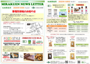 2025年10月2日 / 最終更新日時 : 2025年10月2日 ad001 味楽園通信 月刊「味楽園通信」2025年10月号 特集: 事務所移転のご案内、FOOD STYLE 2025来場のお礼 有機ミルクパウダー、有機梅商品、お正月商品のご案内 画像のクリックでPDFデータのダウンロードできます。 Follow me! FacebookXBluesky コメントを残す コメントをキャンセルメールアドレスが公開されることはありません。 ※ が付いている欄は必須項目ですコメント ※ 名前 ※ メール ※ サイト 次回のコメントで使用するためブラウザーに自分の名前、メールアドレス、サイトを保存する。 Δ